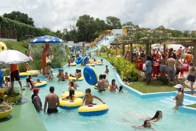 Lazy river” (ou “rio lento”) é uma atração aquática onde os visitantes entram em boias/flutuadores e são levados por uma corrente suave ao redor de um percurso aquático, sem precisar nadar intensamente.
